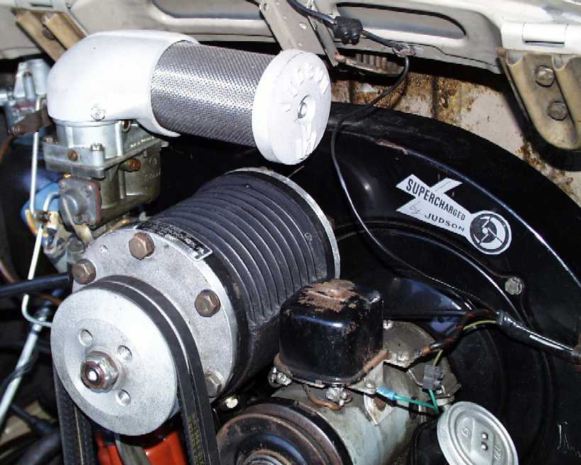 1200 cm³, Basis: 30 PS bei 3600 U/min, Leistungssteigerung durch zeitgenössisches Tuning mit JUDSON-Kompressor mit separatem, Unterdruck gesteuerten Tropfenöler. TÜV-Messung: 38 PS bei 4000 U/min. Zündverteiler vom Porsche 356, rein fliehkraftgesteuert, Hochleistungszündspule, Riechert VA-Auspuff- endrohre. Bilder vom Motorraum
